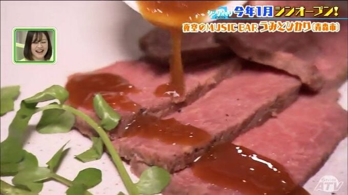 「すごく柔らかい!自分のからだの部分で例えると、ちょっとほっぺの下くらい。すごくとろける~。ソースのワサビがいいアクセントになっています」