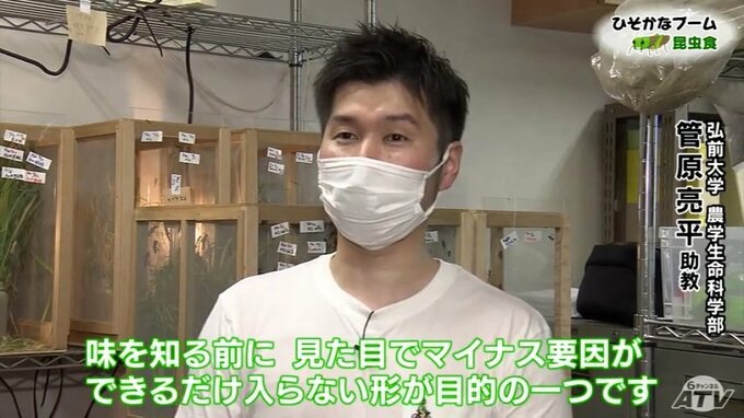 バッタを粉末にしたことが商品化の大きなポイントとなりました。その狙いについて、食用バッタの繁殖方法を研究し商品開発に携わった弘前大学農学生命科学部の管原亮平助教はこう、解説しています。