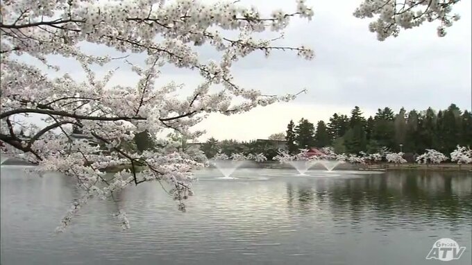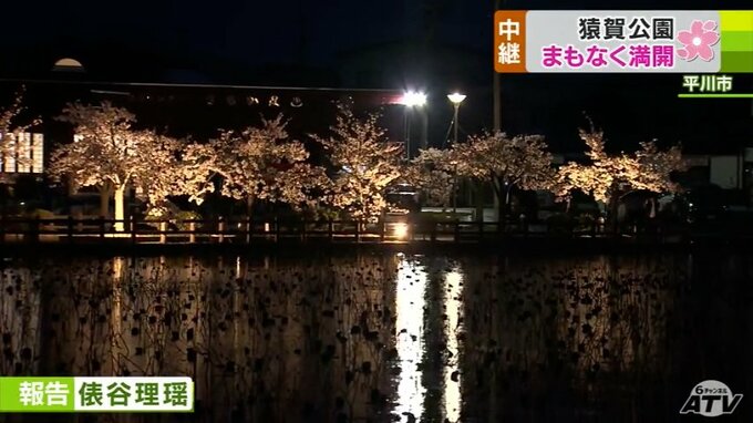 水面に、たくさんのソメイヨシノが淡く浮かび上がっています。猿賀公園の見どころの一つ、鏡ヶ池に映る夜桜です。(16日の)平川市では、夕方から断続的に雨が降り続いていますが、日中は過ごしやすい天気となり、サクラも綺麗に花開きました。