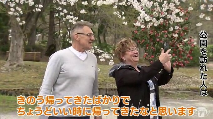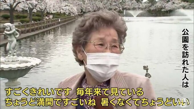 「すごく綺麗です。毎年来て見ている。ちょうど満開で、すごいね。あまり暑くなくてちょうどいい」