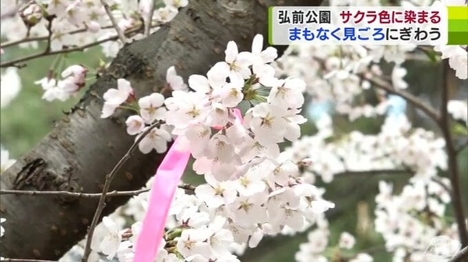 国内有数のサクラの名所・青森県の弘前公園は、まもなくソメイヨシノが見ごろのピークを迎えます。18日の園内は7分咲き。19日にも満開となる見込みで、咲き誇るサクラが訪れた人たちを魅了しています。