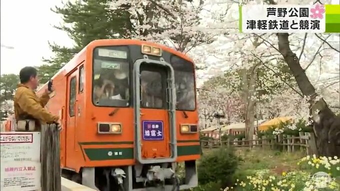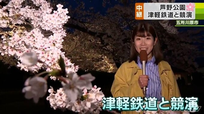 各地で桜の見頃がピークに近づいている青森県。連日「お花見日和」が続いていますが、青森テレビでは今週、各地のサクラの状況をニュース内で中継でお伝えしています。18日は、津軽鉄道とサクラの競演が楽しめる五所川原市の「芦野公園」です。桜のトンネルは満開になっています!以下、小野寺紀帆アナウンサーの報告の全文です。