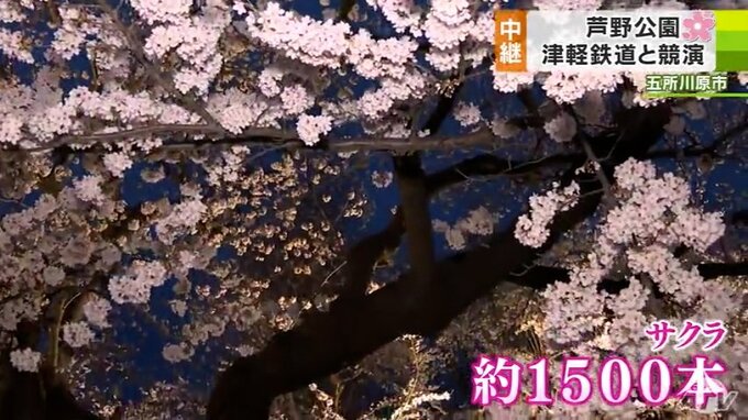 日没を迎え、暗くなり始め、淡いピンク色の淡い花びらが艶やかさを増しています。県内有数のサクラの名所・五所川原市の「芦野公園」は、ソメイヨシノを中心に1500本のサクラが咲き誇り、日の当たる場所はすでに満開になっています。