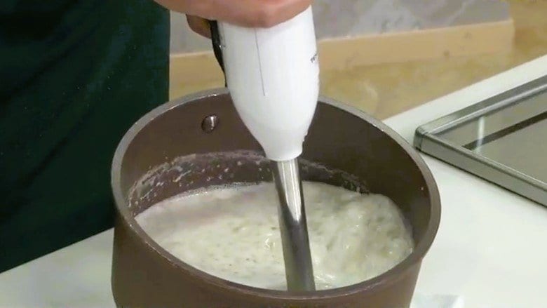 4.3に充填豆腐を加え、口当たりがなめらかになるようにしっかりとミキサーにかける