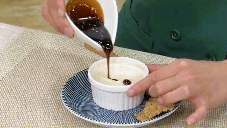 7.冷蔵庫から取り出して黒みつをかけて完成!