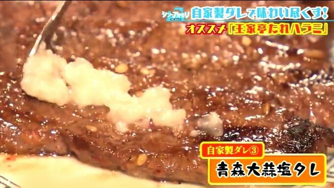 そして「青森大蒜塩タレ」です。がっつりとニンニクが感じられ、お肉に絡みついたニンニクと塩麹の食感が食欲を掻き立てます。