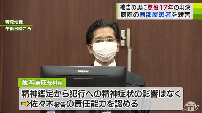 1日に開かれた判決公判で、青森地裁の藏本匡成裁判長は、精神鑑定の結果から犯行への精神症状の影響はないとして、佐々木被告の責任能力を認めました。