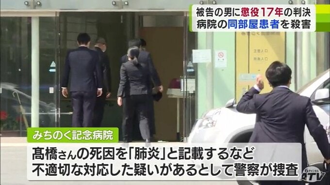 「警察に捕まれば病院から出られる…」歯ブラシの『柄』で『まぶた付近』突き刺すなどして病院内で男性入院患者を殺害 被告の男に懲役17年の判決【みちのく記念病院・入院患者殺人事件】 2024年7月1日(月) 18:43 国内 病院への捜査も… この事件を巡っては、みちのく記念病院が髙橋さんの死因を「肺炎」と記載するなど不適切な対応をした疑いがあり、警察は引き続き、病院への捜査を続けています。