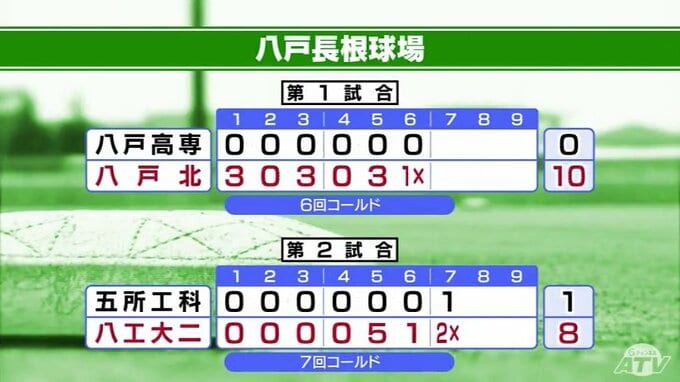 つづいて八戸長根では、八戸北と八工大二がともにコールド勝ちを収めています。