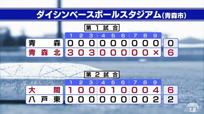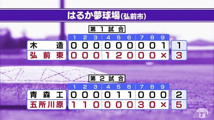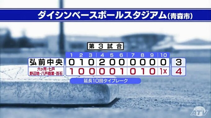 青森市では、青森北が青森に勝利。大間が八戸東に勝利しました。そして第三試合、弘前中央と十和田・八戸地区連合は延長戦の末、連合が勝ちました。