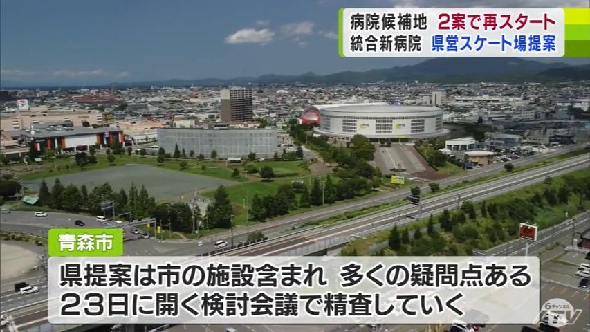 県営スケート場一帯に統合新病院を整備する案について、青森市は現段階では多くの疑問点があり、県からの提案に同意していないとしていて、23日に開く検討会議から精査するとしています。
