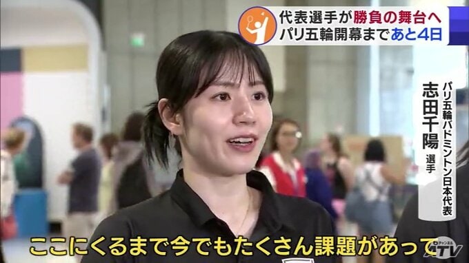 「パリの舞台で、東京オリンピックの悔しさを晴らすためにここまでやってきた。本当に、あとはやりきって日本に帰ってくるだけだと思っているので、五輪の舞台を存分に楽しみたい」