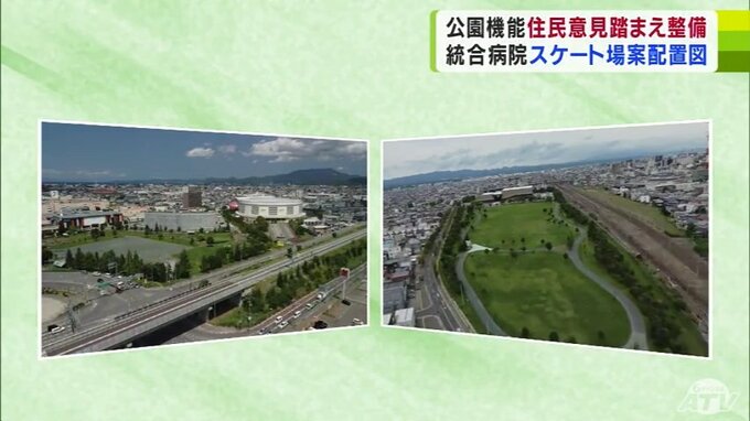 公園にある遊具やバスケットコートなどは、住民の意見を踏まえて整備するとして公園機能と医療関連機能を立体的に構築するということです。