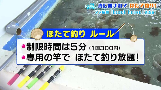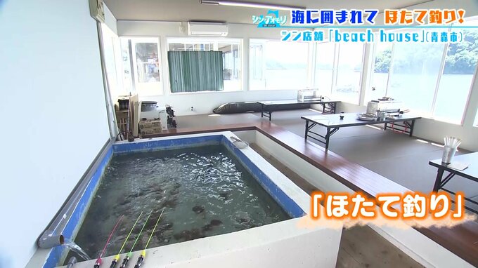 『beach house』でできる青森の海らしい体験とは、“ほたて釣り”でした!ルールは簡単。制限時間5分間で、専用の竿を使ってホタテが釣り放題。(1回300円)