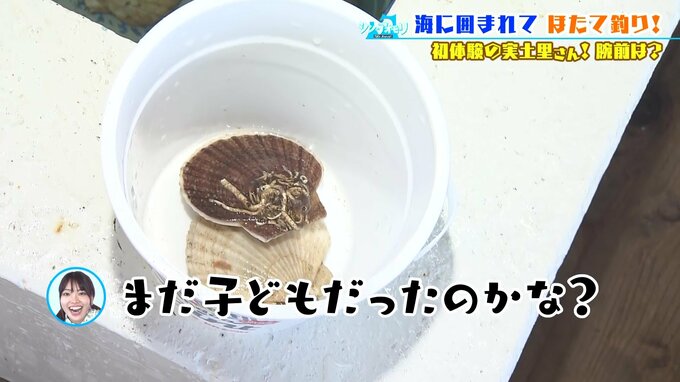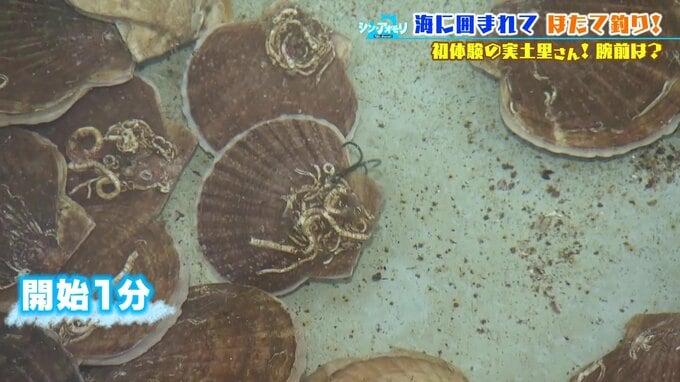実土里さん、初めての“ほたて釣り”がスタート!