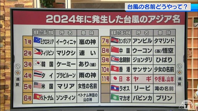 台風11号は実は「ヤギ」という名前がついていますが、実は2024年の台風は、1号からずっと見ていきますが全部に名前がついてます。