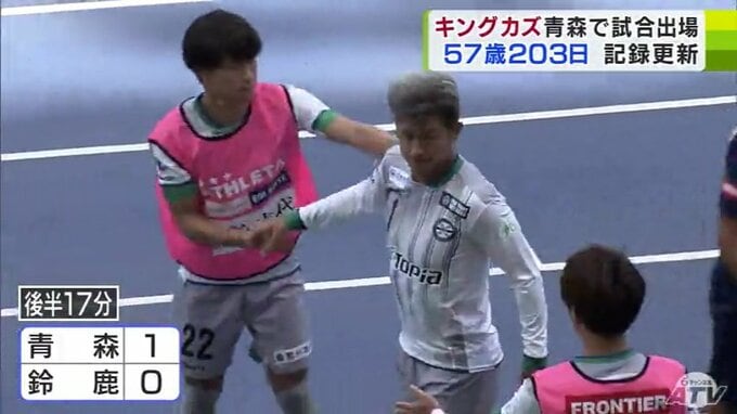 「キングカズ」こと三浦知良(みうらかずよし)選手を擁するサッカーJFLのアトレチコ鈴鹿がラインメール青森と対戦。三浦選手はJFLの出場記録を57歳と203日に更新しました。