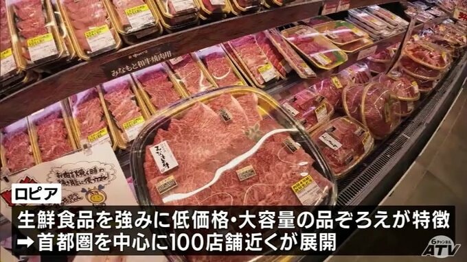 「ロピア」は、生鮮食品を強みに低価格・大容量の商品を豊富に取り揃えているのが特徴で、首都圏を中心に100店舗近くが展開されています。