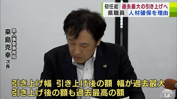 人事委員会によりますと、初任給の引き上げ幅は1990年の1万6800円がこれまでで最も大きく、今回、勧告通り実施が決まれば、その当時を超えて過去最大の引き上げ幅となります。