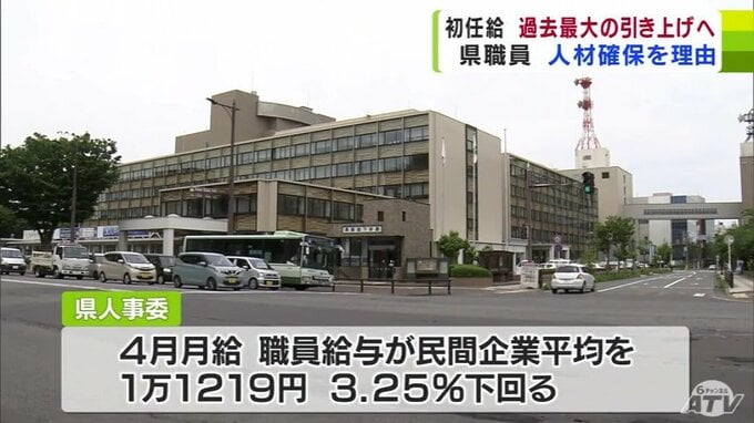 人事委員会によりますと2024年4月の月給は職員給与が、民間企業の平均を約1万1219円、率にして3.25%下回り、年間のボーナスも民間を0.14か月分下回っていました。