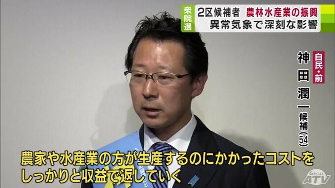 自民党の前職・神田潤一氏(54)は、生産コストをまかなえる経営環境の確立などを訴えました。