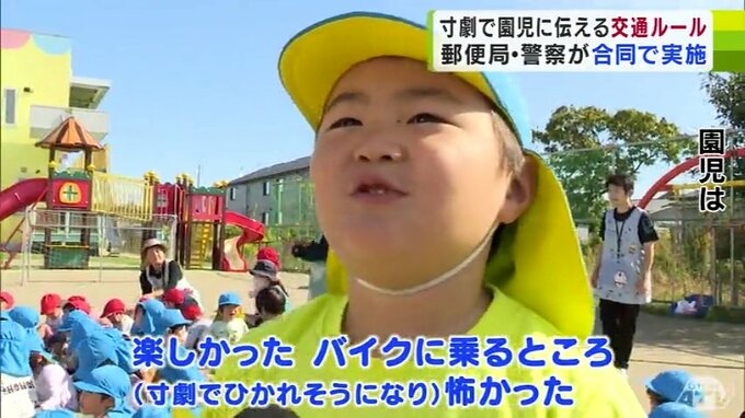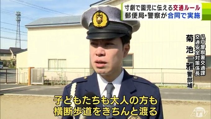 日没が早まるこの時期は、交通事故が増加する傾向にあります。青森県八戸市の保育園では、郵便局と警察による交通安全教室が開かれ、寸劇を交えて分かりやすく子どもたちに事故防止を呼びかけました。