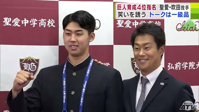 巨人「育成4位指名」吹田志道投手に指名あいさつ “舌好調”トークと質問には“変化球”で答えて笑いを誘う マウンドでも球場を沸かせる投手に…! 2024年10月31日(木) 21:00 国内 プロ野球ドラフト会議で指名された青森県内の投手が、31日に球団から「指名あいさつ」を受けました。巨人から「育成4位指名」を受けた弘前学院聖愛の吹田志道投手のもとには、担当の円谷英俊スカウトたちが訪れ、…