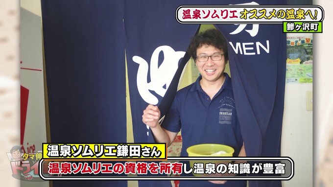 案内役は、温泉ソムリエの鎌田さん。温泉ソムリエ協会が認定したソムリエの資格を持ち、温泉の知識が豊富です。