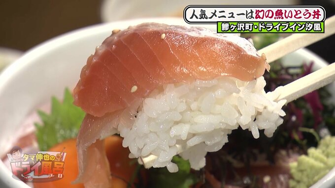 脂がのっておいしいのは秋冬ということなので、いまが旬の『イトウ』の刺身をたっぷりのせた【いとう丼】(2300円)を2人も食べてみることに。