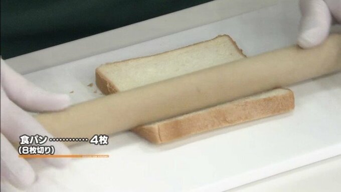 1.食パンを麺棒などで軽く押しつぶす。