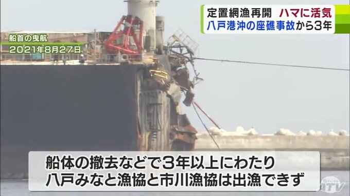 2021年8月、八戸沖で起きたパナマ船籍の貨物船の座礁事故。この事故を受けた船体の撤去などがあり、3年以上に渡って「みなと漁協」と「市川漁協」は、漁に出ることができなくなりました。