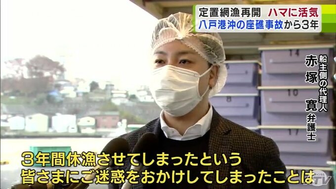 「3年間休漁させてしまったという、みなさまにご迷惑をおかけしてしまったことは改めてお詫び申し上げたいと思っています。今回、3年ぶりに網上げをした結果、大漁にちゃんとしたサバが入ってきたということで、船主側としても安心いたしました」