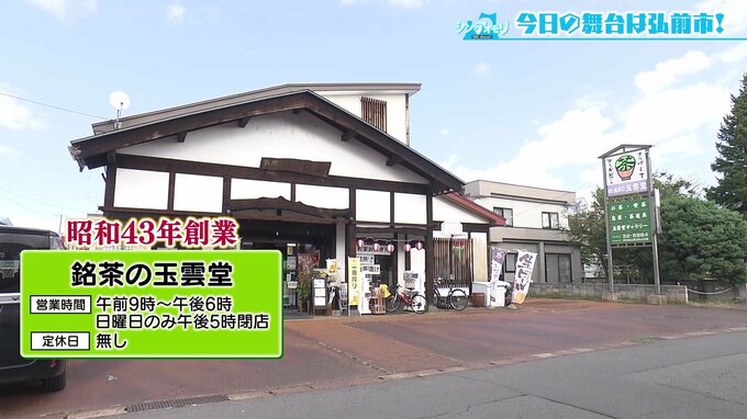 実土里さんがやってきたのは、弘前市の静かな住宅街にある1968年(昭和43年)創業の【銘茶の玉雲堂】。日本茶の専門店です。