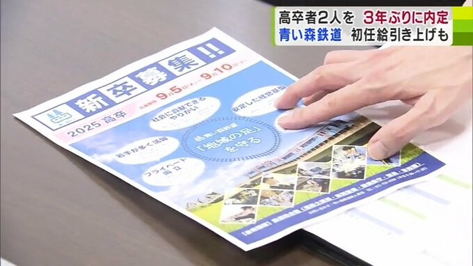 若者の人材確保について、青森市に本社を置く「青い森鉄道」では、3年ぶりに高卒者2人を内定しました。奏功したのは初任給の引き上げと捉えています。