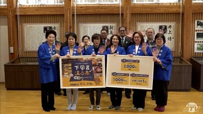 本州最北の温泉郷で宿泊キャンペーンの予約始まる 下風呂温泉郷で1人1泊2000円引きに 青森県風間浦村 2024年11月23日(土) 12:12 国内 冬の時期に温泉宿に宿泊する客足を増やし観光業の活性化を図ろうと、青森県風間浦村で独自の宿泊キャンペーンの予約が始まりました。風間浦村の下風呂温泉郷の9か所の宿泊施設が参加するキャンペーンでは、全国か…