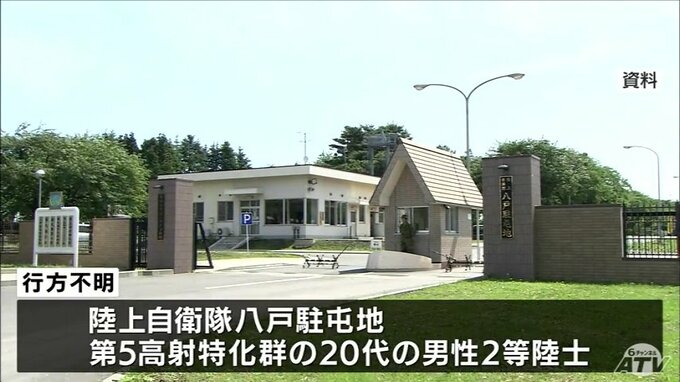 陸上自衛隊八戸駐屯地によりますと、行方不明になっているのは第5高射特科群に所属する20代の男性2等陸士です。