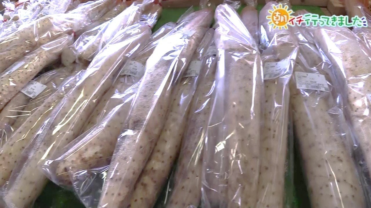 「三沢といえばやっぱりナガイモ!今年は雨の影響で例年よりも出荷が少し遅いみたいなので、まだまだ楽しめるんだそうです。粘り気がしっかりあっておいしいんですよね。これは買っていきましょう。かごに入らないな…よいしょ!」