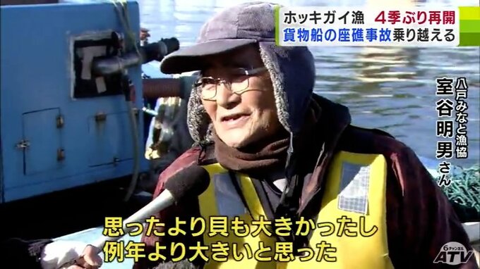 八戸みなと漁協では、ホッキガイのほかに定置網漁も11月に4シーズンぶりに再開していて、座礁船事故を乗り越えて少しずつ日常を取り戻そうとしています。