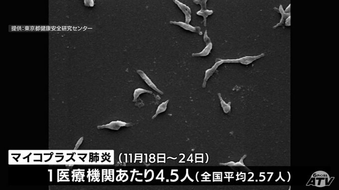 また、「マイコプラズマ肺炎」も11月24日までの1週間で1医療機関あたり4.5人と、全国平均と比べても高い傾向にあります。