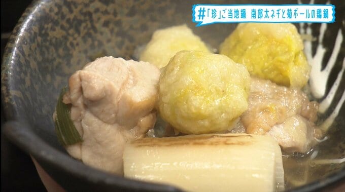 「南部太ネギと菊ボールの鶏鍋」の味は?