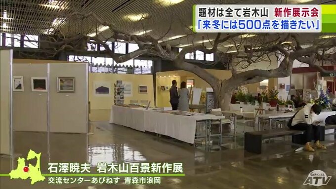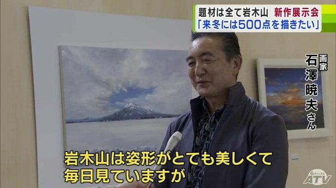 「岩木山は姿形がとても美しくて、毎日見ていますが、それぞれ岩木山から放つオーラが違うんですよ。そういう風なインスピレーションを受けて毎日描いています。次は400点。来年の冬には500点を描きたいと目標を立てています」