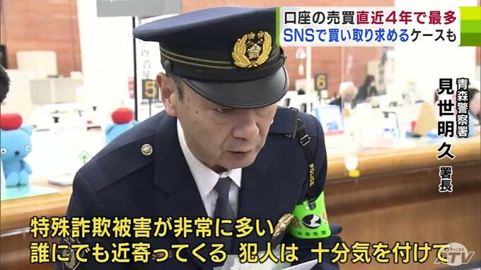 青森県内で2024年に入り、売り買いが疑われて取り引きを停止した口座は52件確認されています。2020年以降最多となっていて、9日、警察官がチラシを配り注意を呼び掛けました。