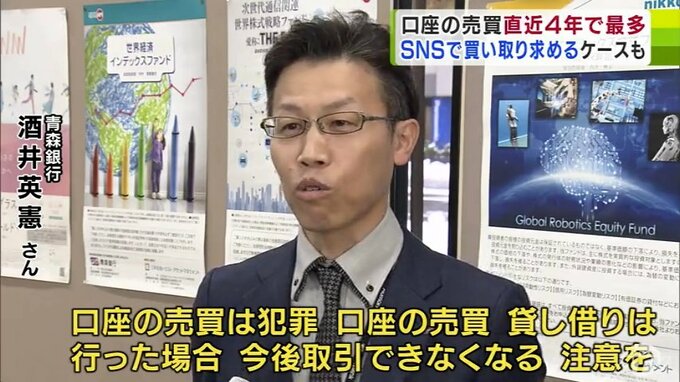 青森銀行によりますと2024年、県内で売り買いが疑われて取り引きを停止した口座は52件確認され、2020年以降でみると最も多かったということです。