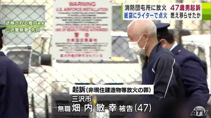 三沢市の無職・畑内敏幸被告(47)は11月、所属していた三沢市消防団の屯所に火を放ち、約230平方メートルを全焼させたとして、非現住建造物等放火の罪で起訴されました。