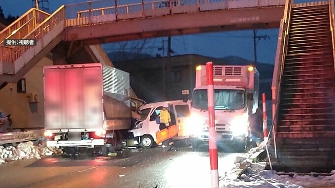 警察によりますと、10日午後4時過ぎ、青森県平内町の国道4号でトラックと軽ワゴン車が衝突する事故がありました。