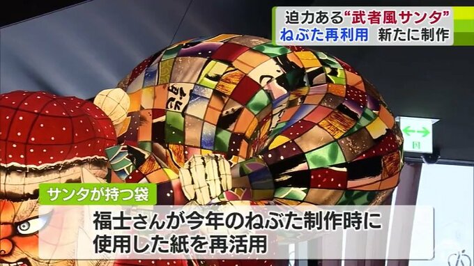 ねぶたの家ワラッセでは、ねぶた師・福士裕朗さんが制作した「サンタねぶた」が展示されています。