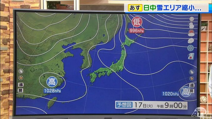 17日夜になると再び天気が崩れはじめ、雪が降りやすくなる見込みです。