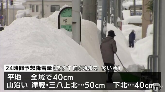 青森市で今冬初の積雪1メートル超え 強い冬型の気圧配置で青森県内降雪続く 2024年12月29日(日) 13:11 国内 青森県内は連日の降雪で青森市では29日、積雪がこの冬初めて1メートルを超えました。 強い冬型の気圧配置などにより県内は各地で断続的に雪が降り、現在全域に大雪と着雪注意報が出ています。※倉島彩能記者「午前…