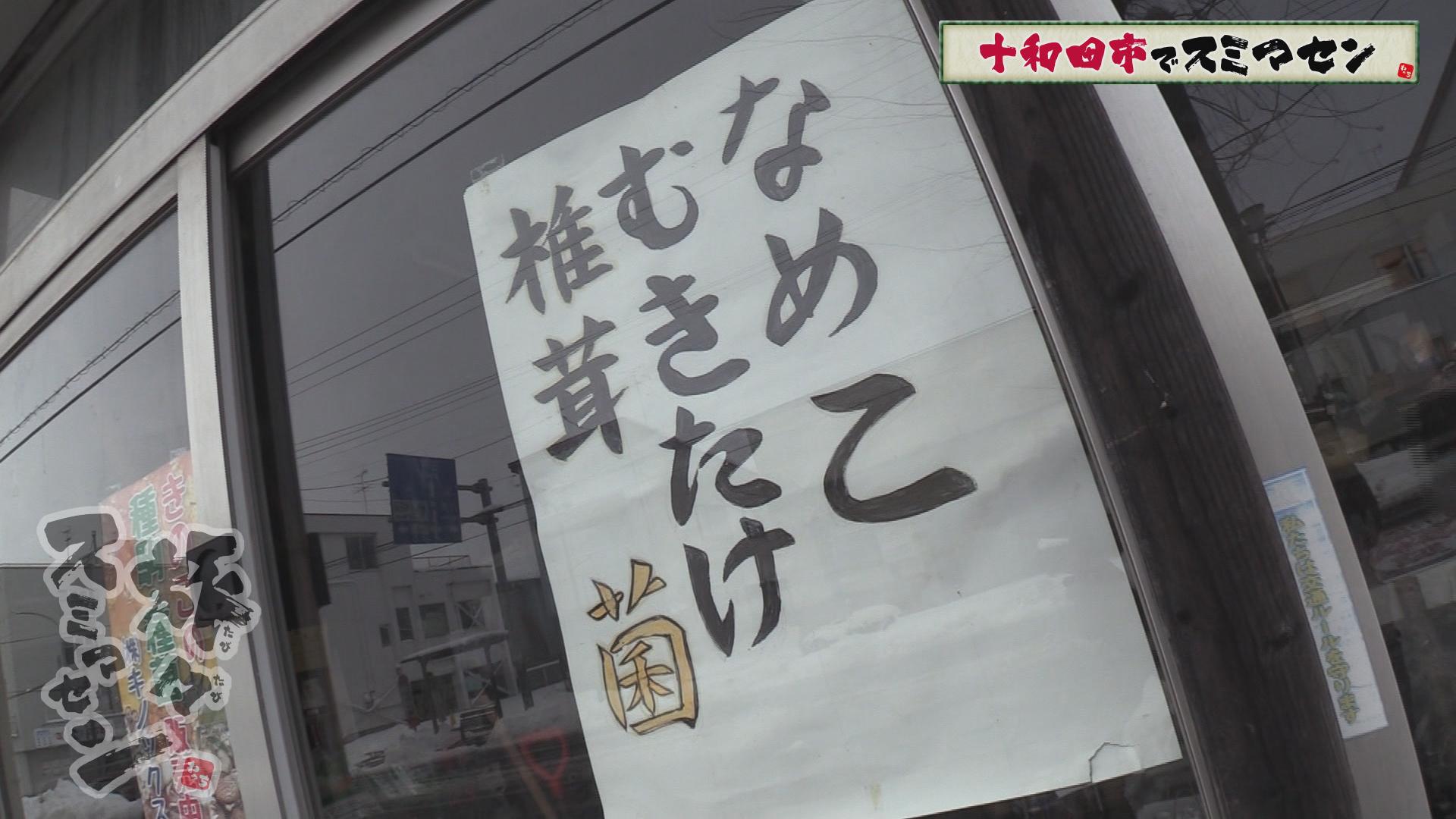ぶらぶら歩く2人がやってきたのは、きのこの種菌も扱っている日用品雑貨店です。くりたけ、ぶなはりたけ、たもぎたけ…きのこ栽培用の種駒やほだ木が並んでいました。