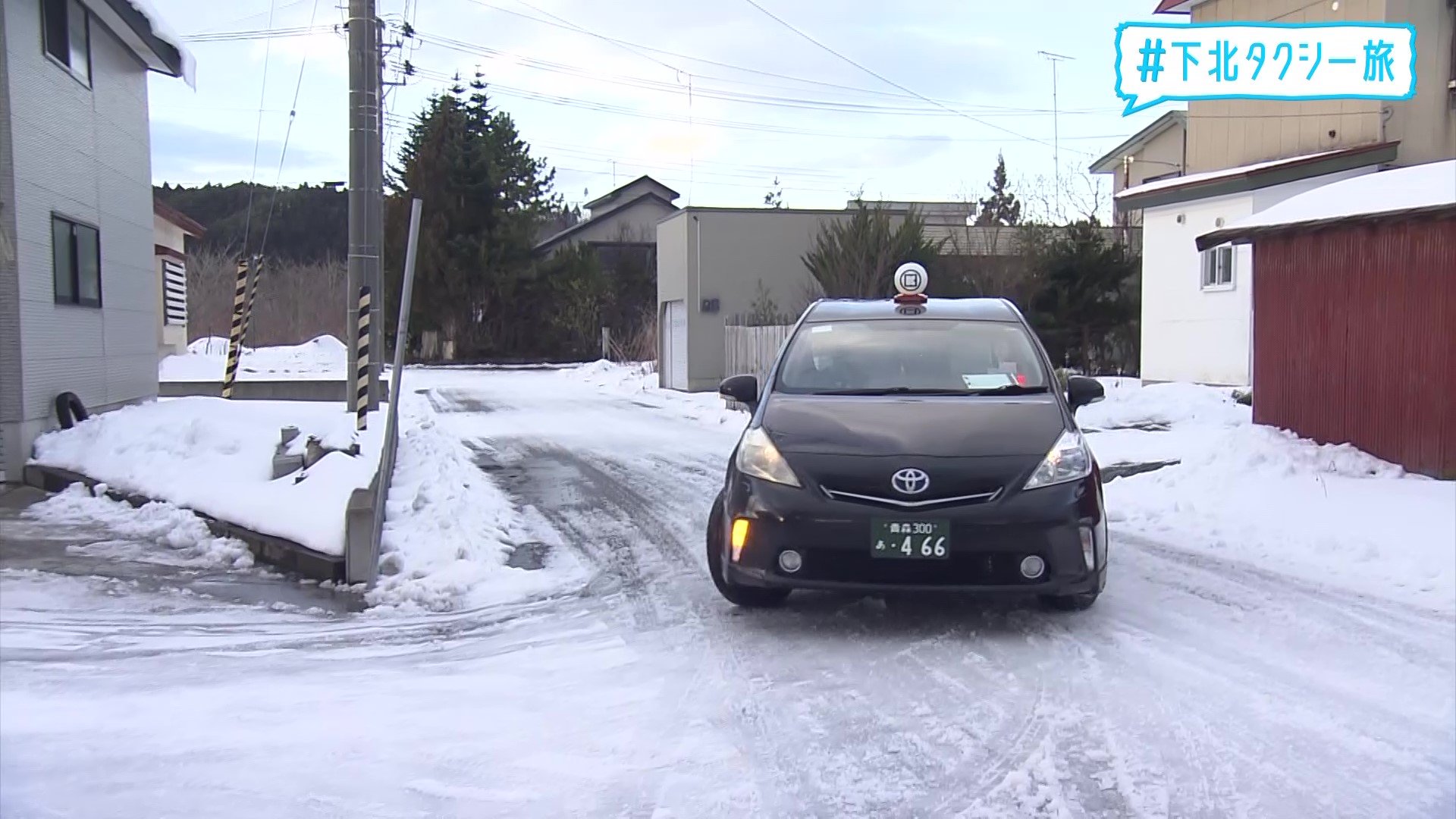 この日の路面は、雪は積もっていないものの、日陰はアイスバーン状態!青森で暮らし始めて1年目の新井アナのように雪道の運転に慣れていない方にも、安心して観光してもらえるのはタクシー旅の魅力の1つ。そして、お酒が好きな方も、移動中に気兼ねなくお酒を楽しむことができます。